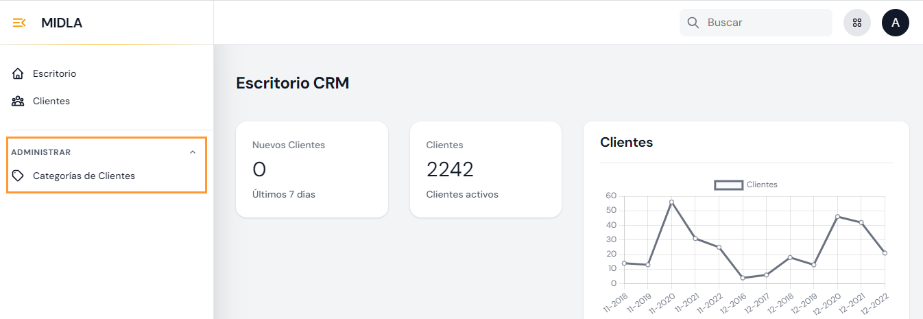 Para crear una categoría de cliente, es necesario ingresar al módulo CRM de la plataforma y hacer