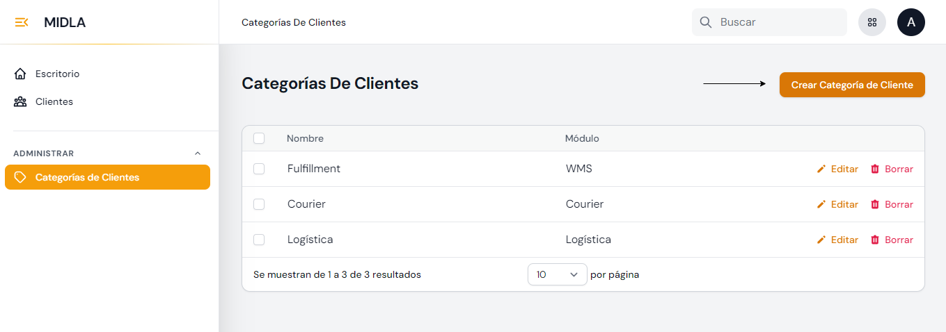 las categorías que tenga el cliente asignadas. Desde el listado está la posibilidad