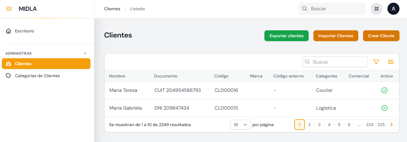 inglés) es una sección que Midla SAAS le ofrece a los operadores de la plataforma para la administración completa con sus Clientes,