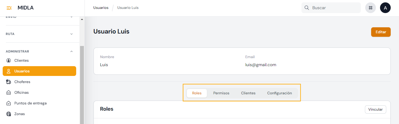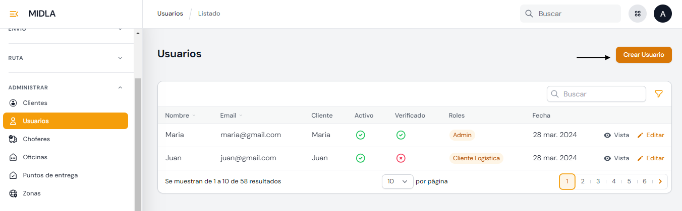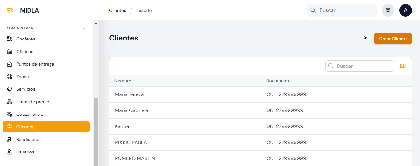 Conoce sobre la sección Clientes y Usuarios del módulo de Logística de Midla SAAS.