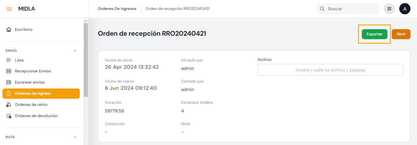 Exportar envíos