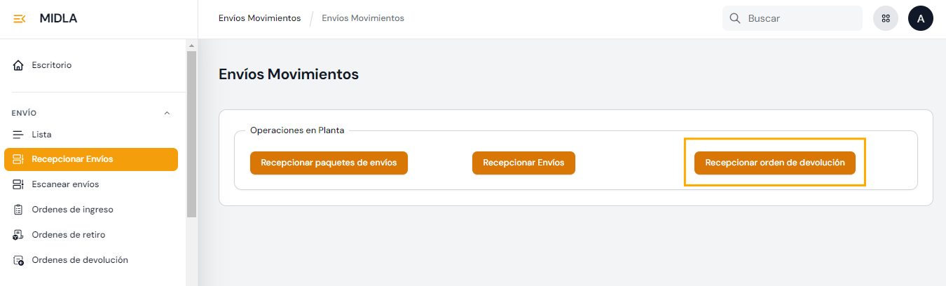 | En planta de procesamiento | Indica que el paquete de la devolución se encuentra recepcionado en la planta de procesamiento del operador logístico. |