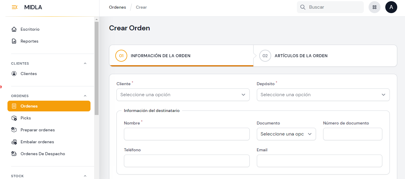 Conoce sobre la sección Órdenes del módulo WMS de Midla SAAS.